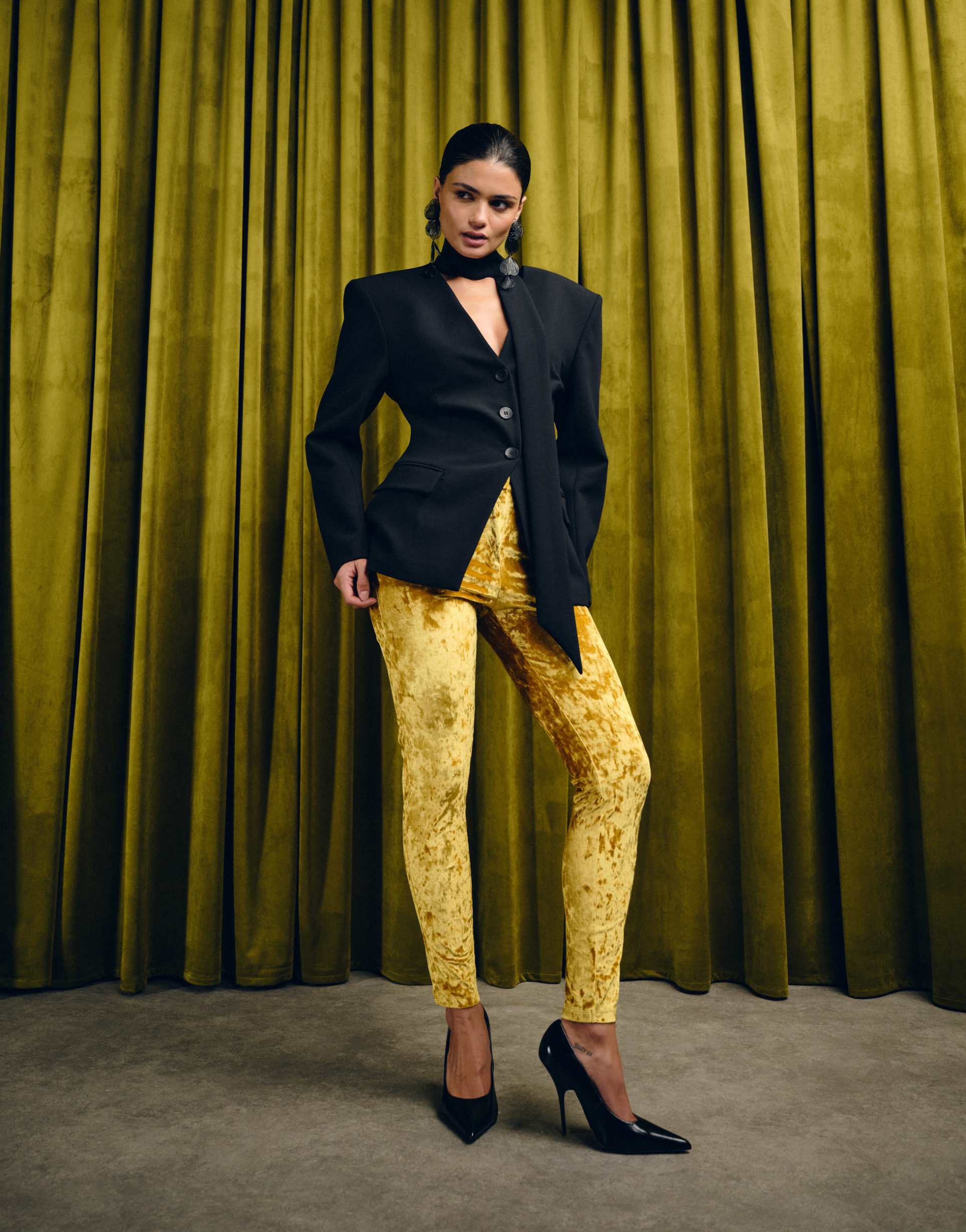 ASOS DESIGN FIVE POCKET SKINNY VELVET PANTS IN GOLD