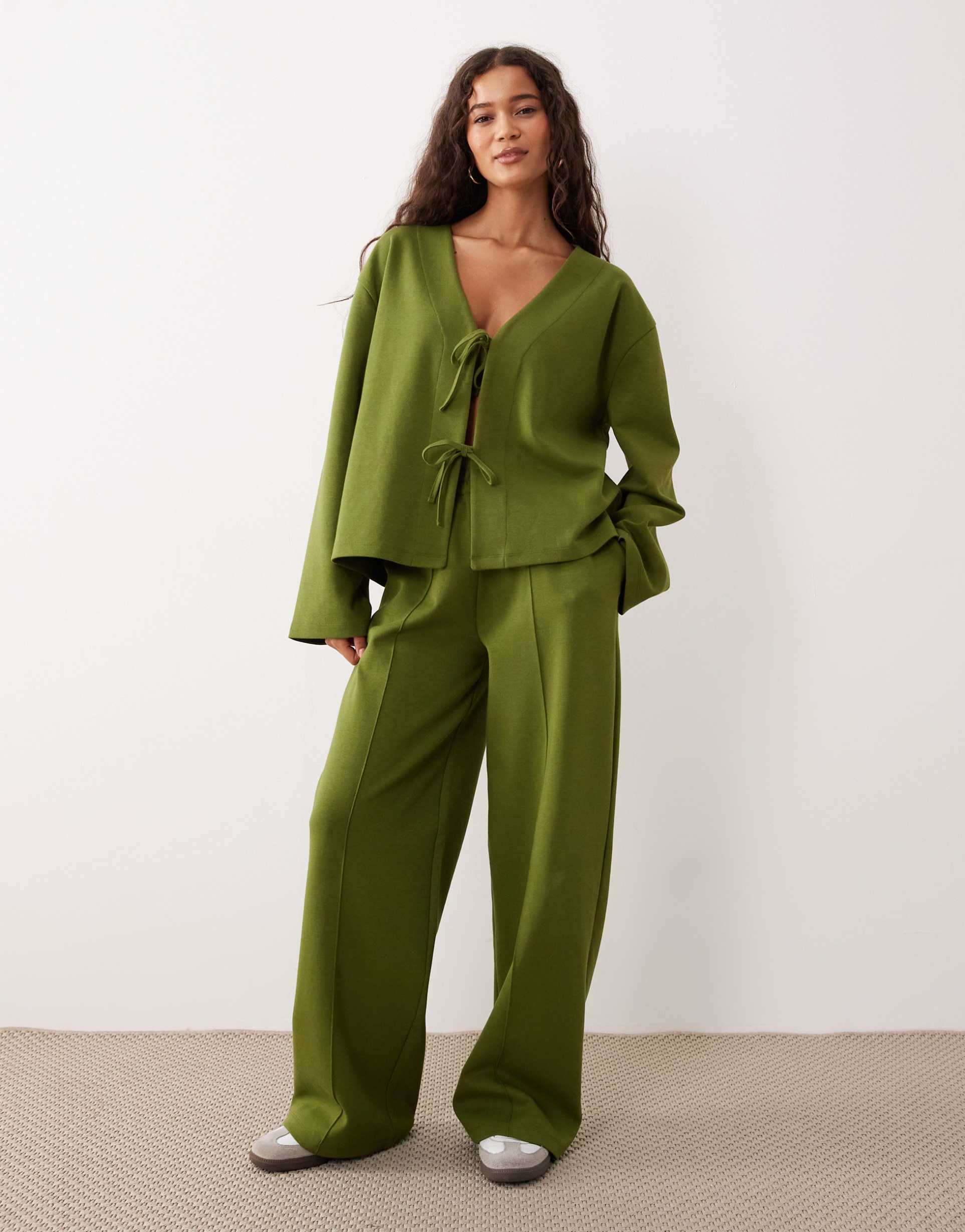 ASOS DESIGN INTERLOCK WIDE LEG PANTS IN GREEN - PART OF A SET