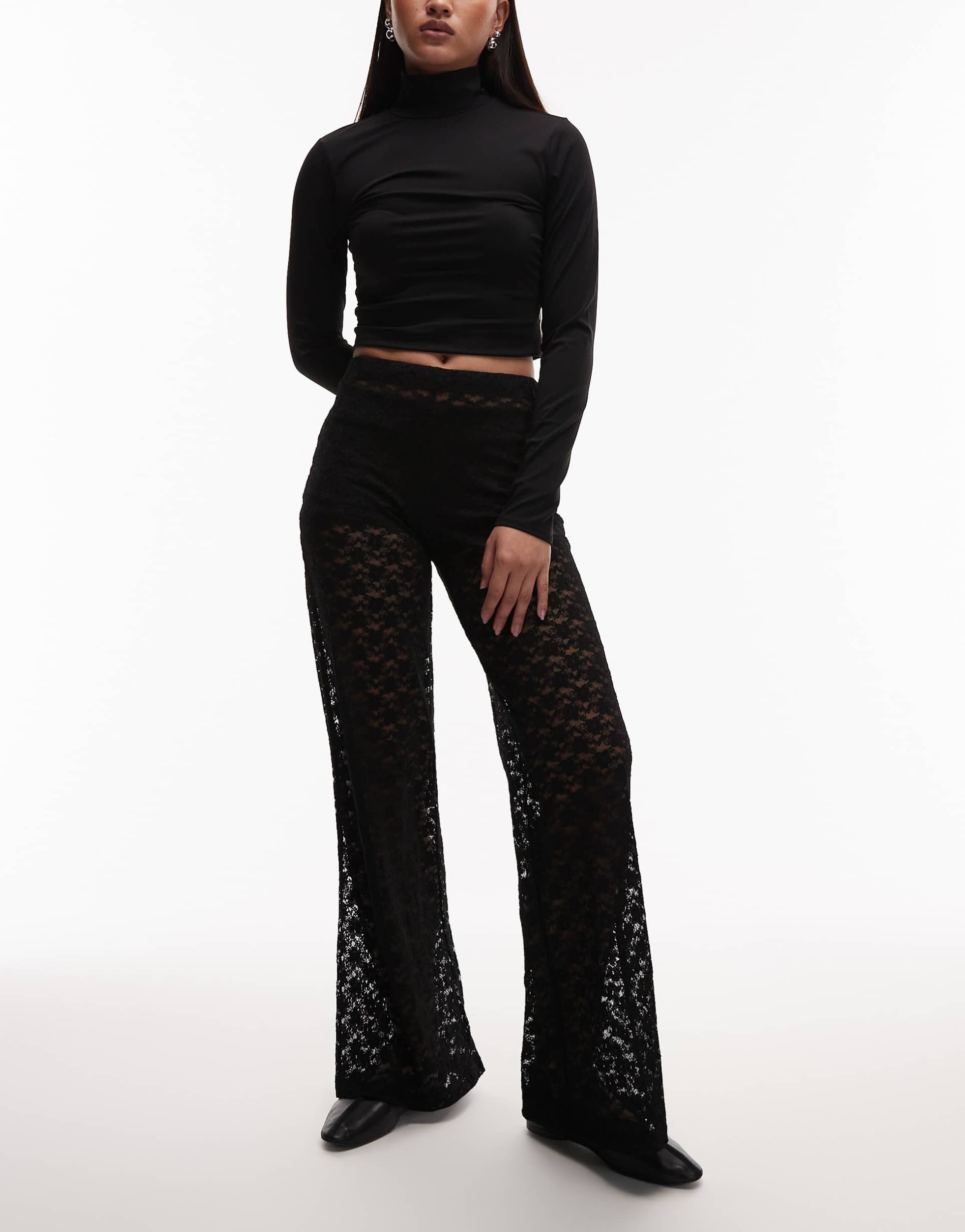 ASOS DESIGN LACE SHEER WIDE LEG PANTS IN BLACK
