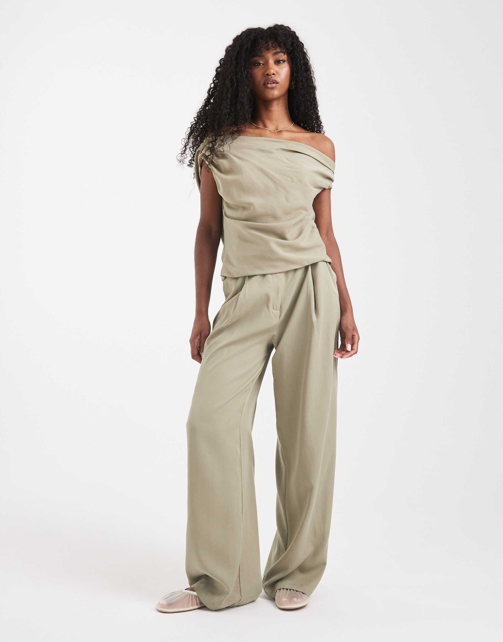 asos design khaki wide leg pants