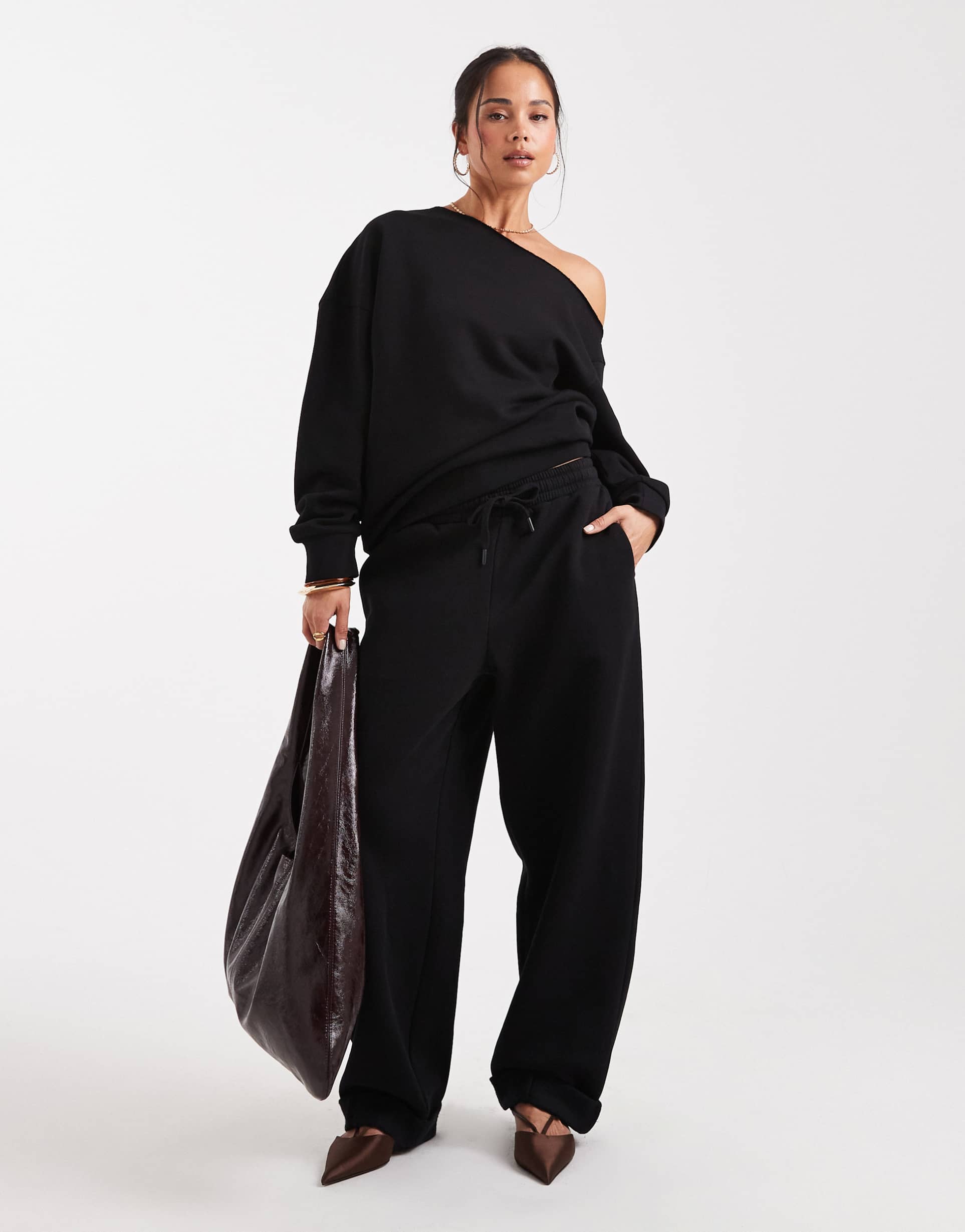 ASOS DESIGN OVERSIZED BRUSHBACK SWEATPANTS WITH CUFFED HEMS DETAIL IN BLACK