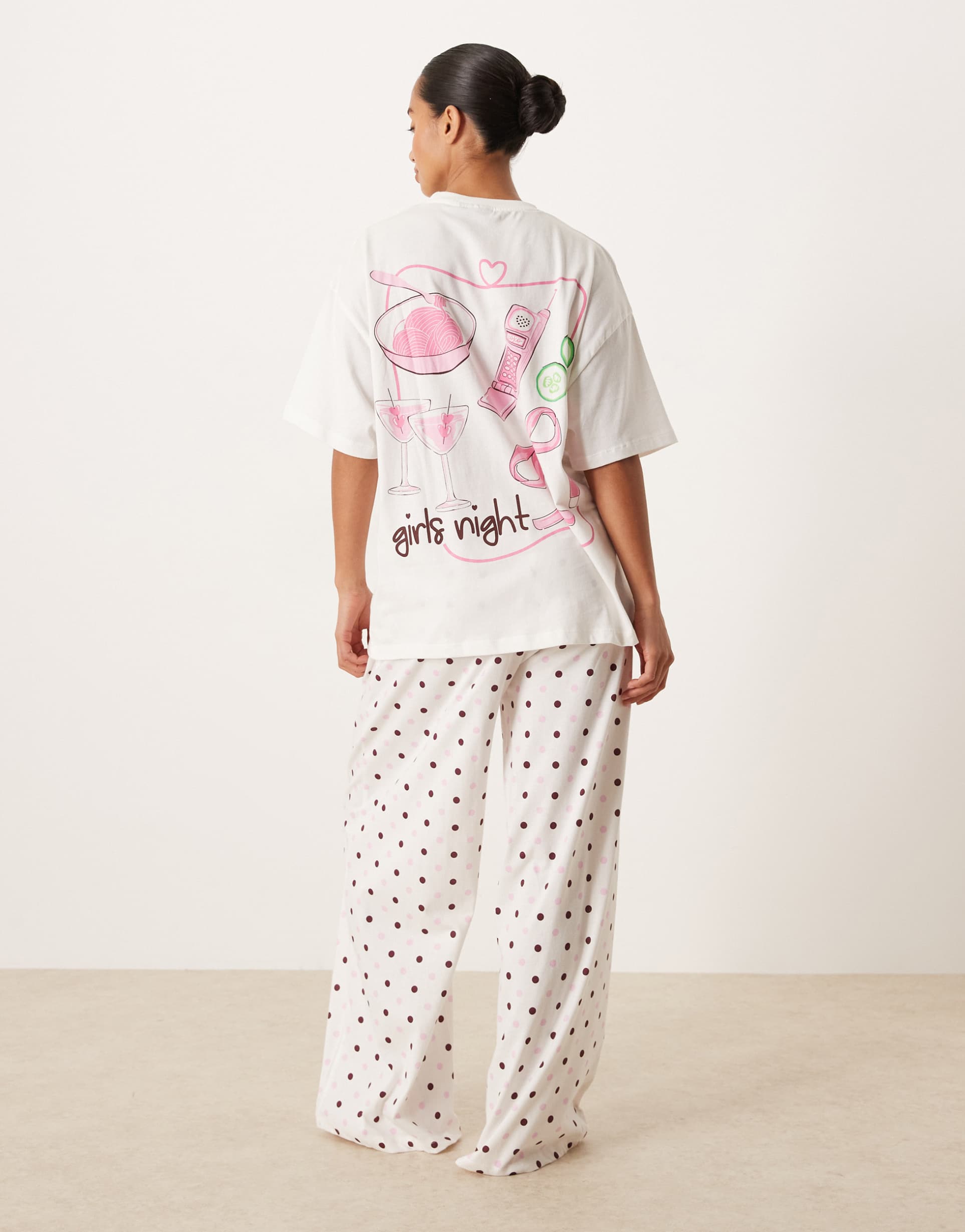 ASOS DESIGN PETITE OVERSIZED TEE AND WIDE LEG PANTS PAJAMA SET WITH GIRLS NIGHT GRAPHIC