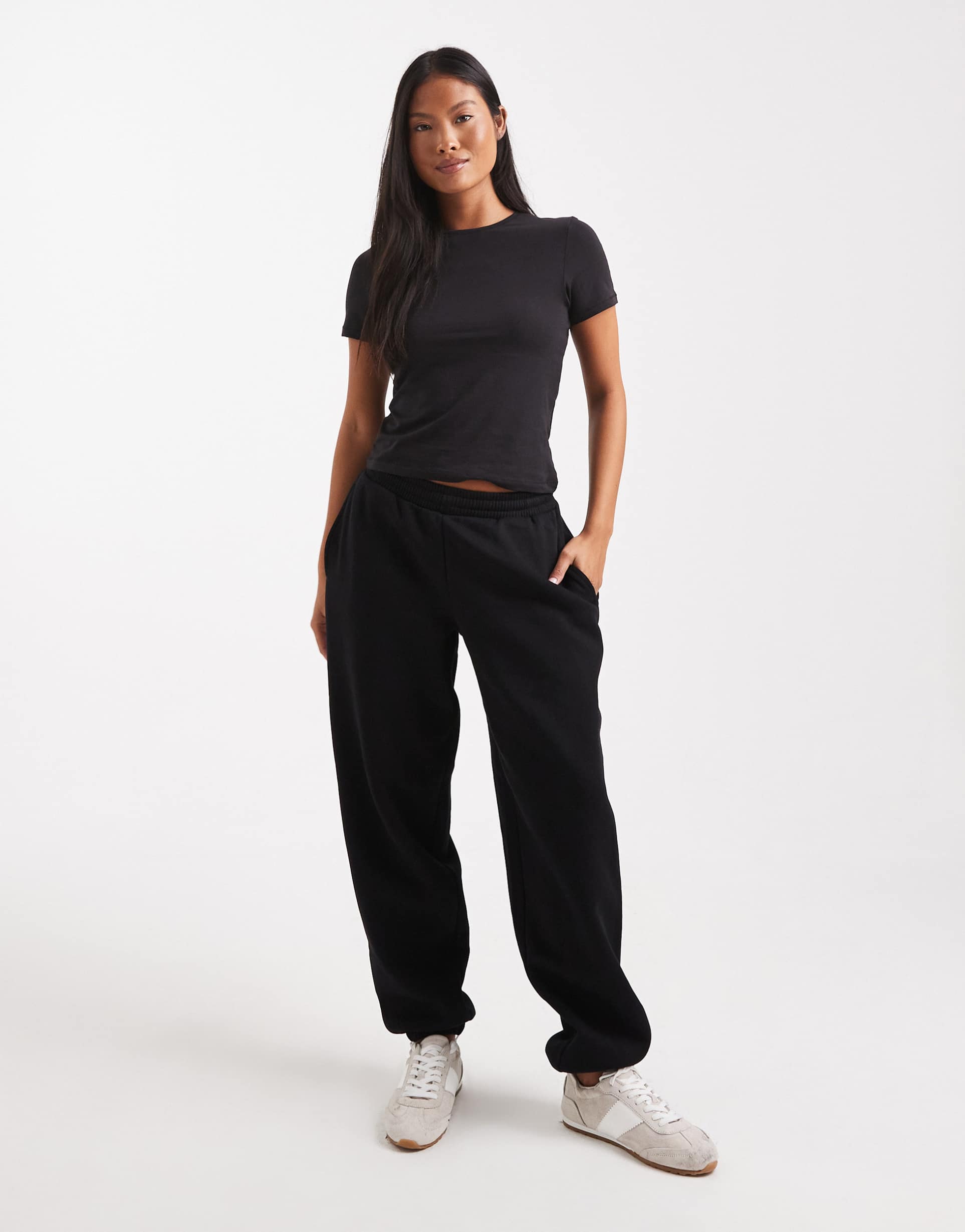 ASOS DESIGN PETITE ULTIMATE CUFFED BRUSHBACK SWEATPANTS IN BLACK
