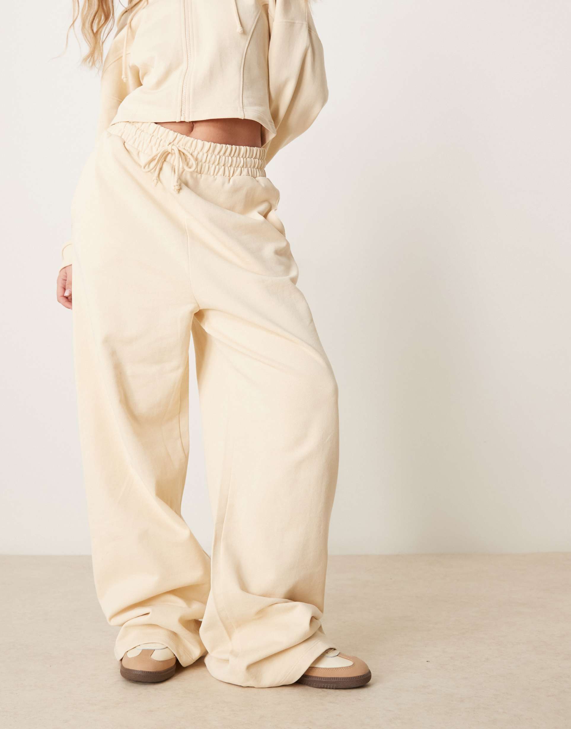 Wrap yourself in easygoing luxury with ASOS DESIGN seam-detail sweatpants in buttermilk. Crafted in soft, breathable cotton knit, the oversized wide leg drapes into a relaxed silhouette with an elasticated, drawstring waist and handy pockets. Subtle seam detailing along the legs adds a polished touch to this comfortable everyday staple. Versatile enough for lounging at home, running errands, or pairing with a blazer for casual-cool city styling. A effortless blend of comfort and minimalism, these sweatpants are a go-to when you want laid-back chic without sacrificing polish.