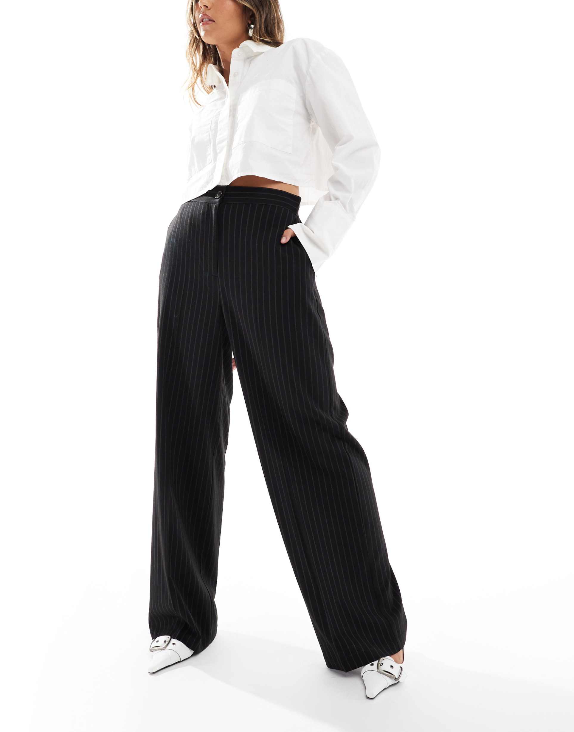 ASOS DESIGN TAILORED RELAXED STRAIGHT LEG DAD PANTS IN BLACK PINSTRIPE