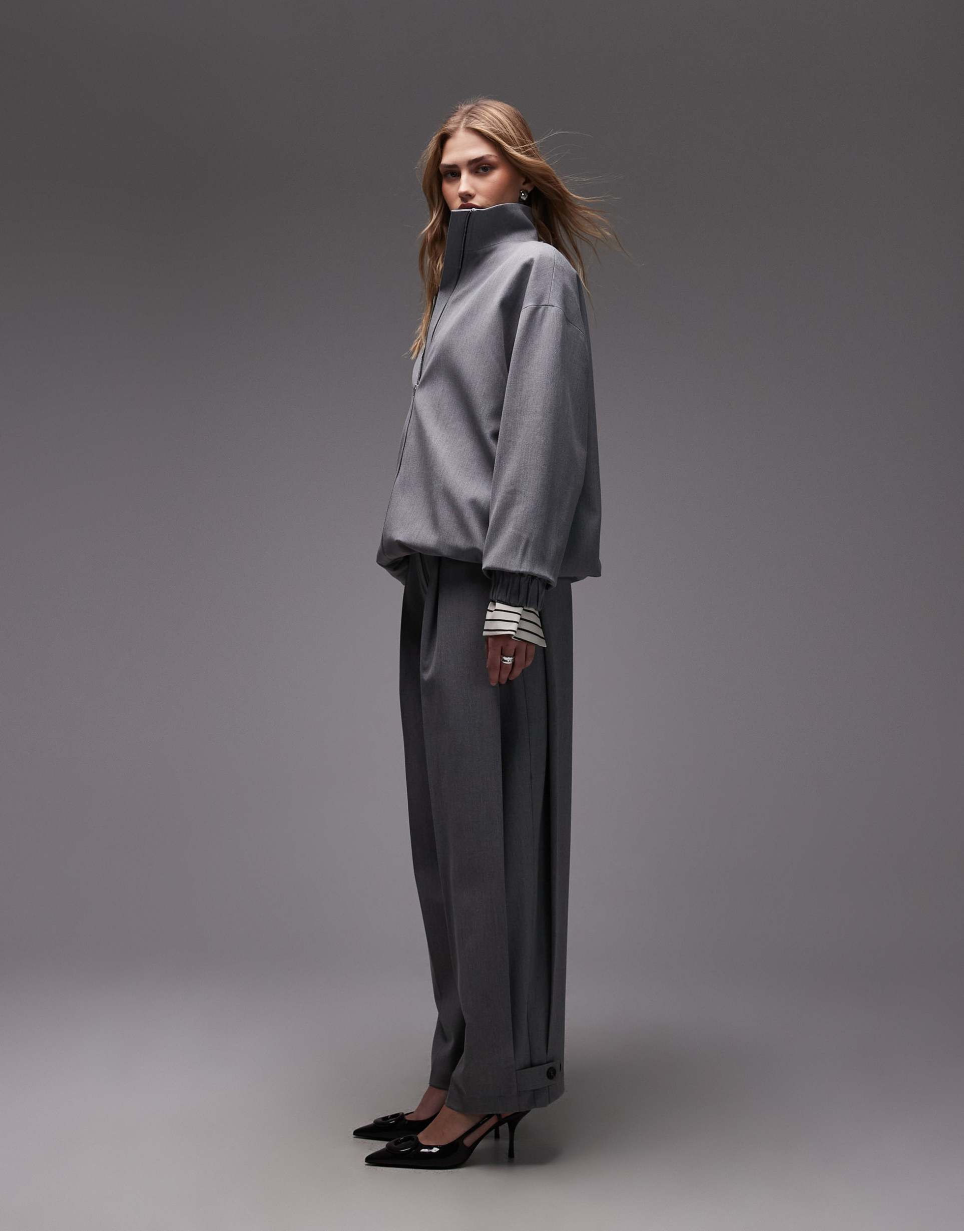 ASOS DESIGN TAILORED SIDE PLEATED PANTS IN CHARCOAL