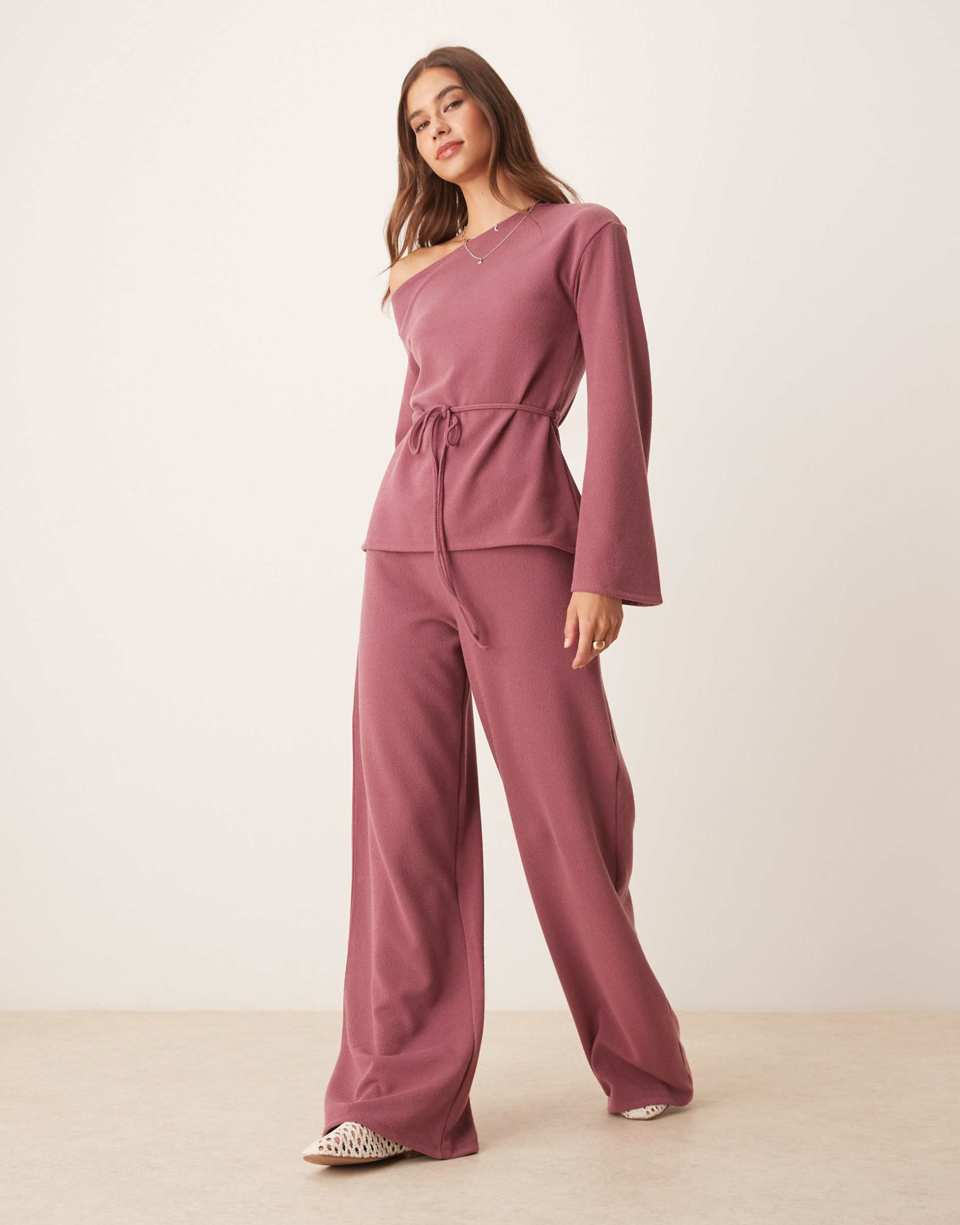 ASOS DESIGN TEXTURED PANTS IN DARK ROSE - PART OF A SET