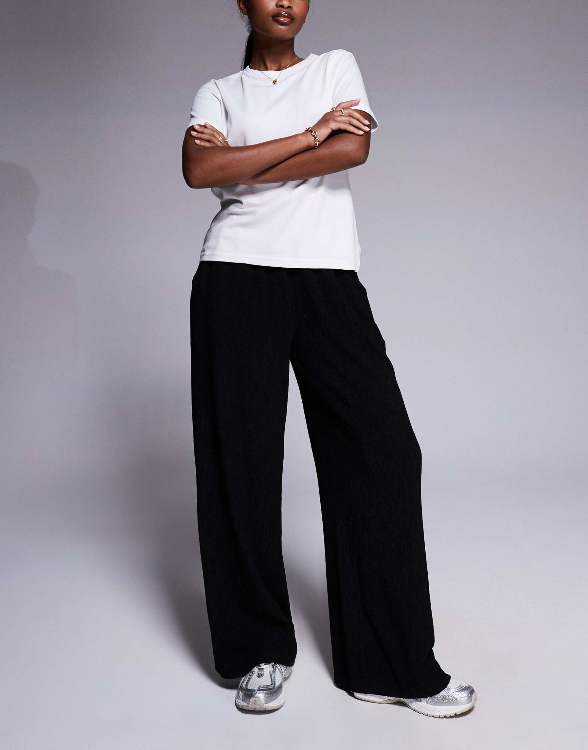 ASOS DESIGN TEXTURED WIDE LEG PANTS IN BLACK