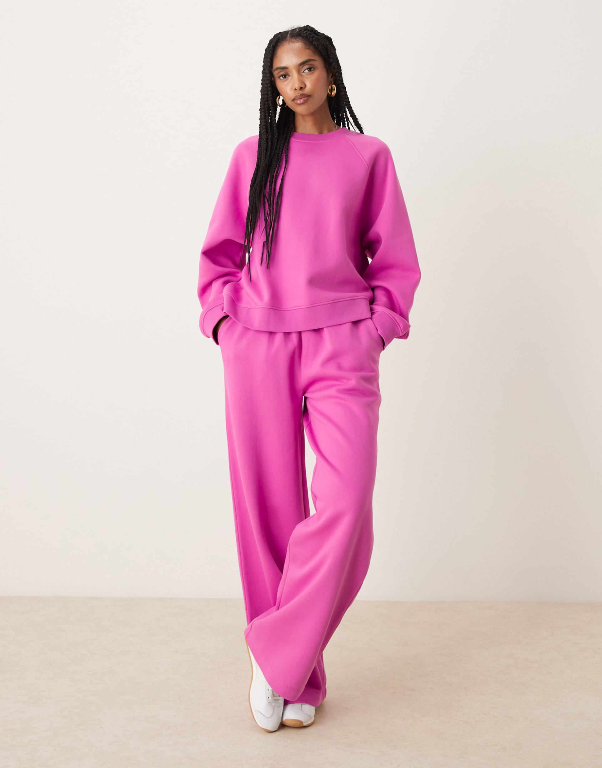 ASOS DESIGN WIDE LEG BRUSHBACK SWEATPANTS IN PINK