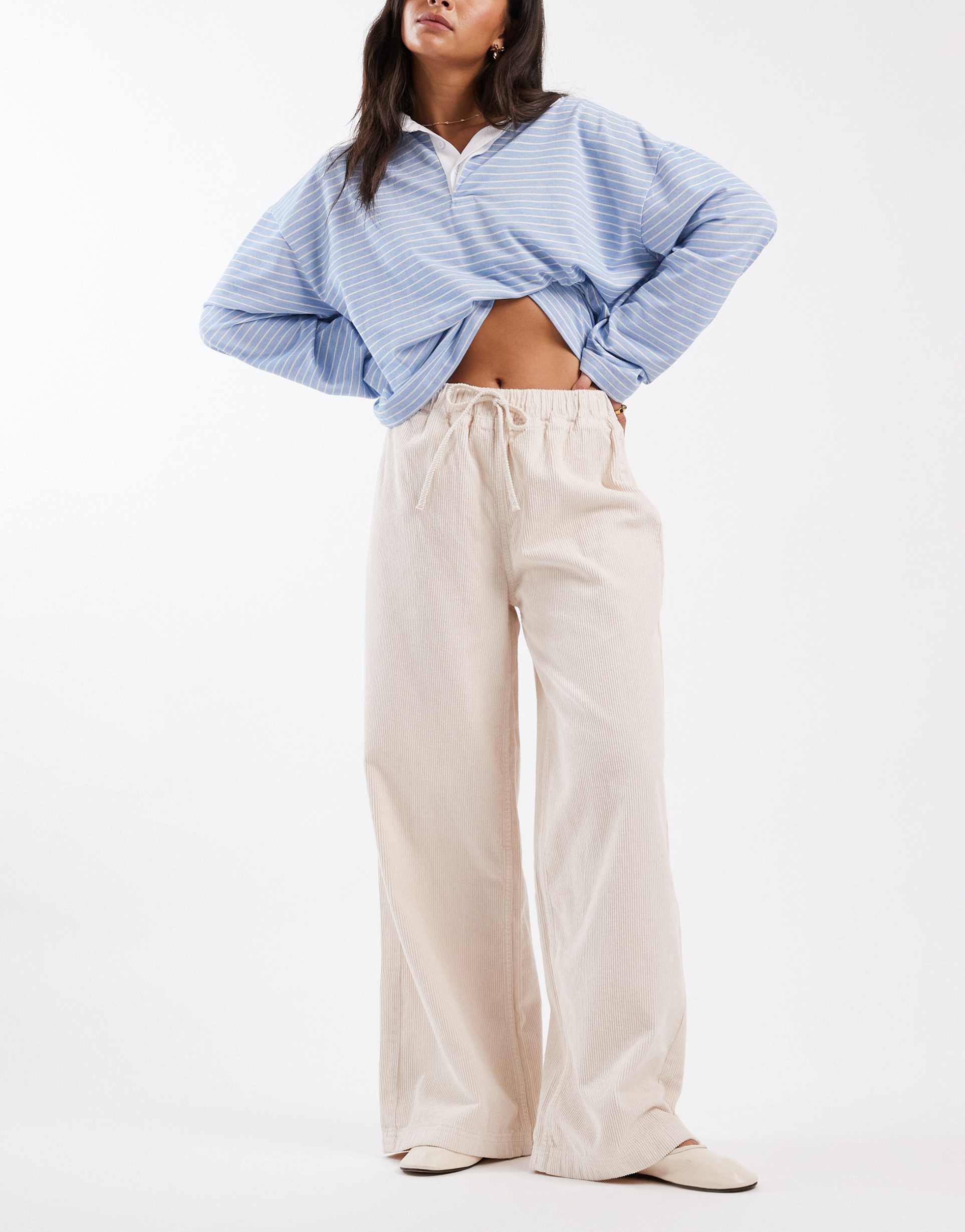 ASOS DESIGN WIDE LEG CORDUROY SWEATPANTS STYLE PANTS IN STONE