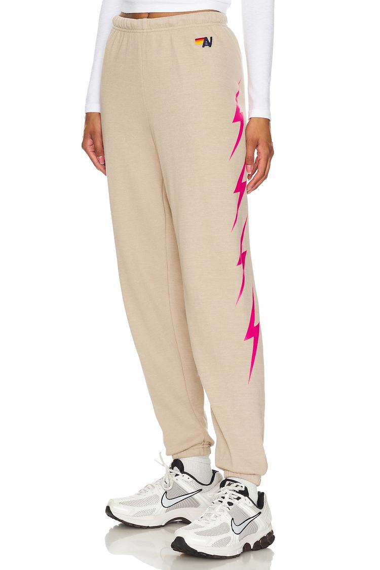beige joggers with pink bolt graphic for everyday comfort