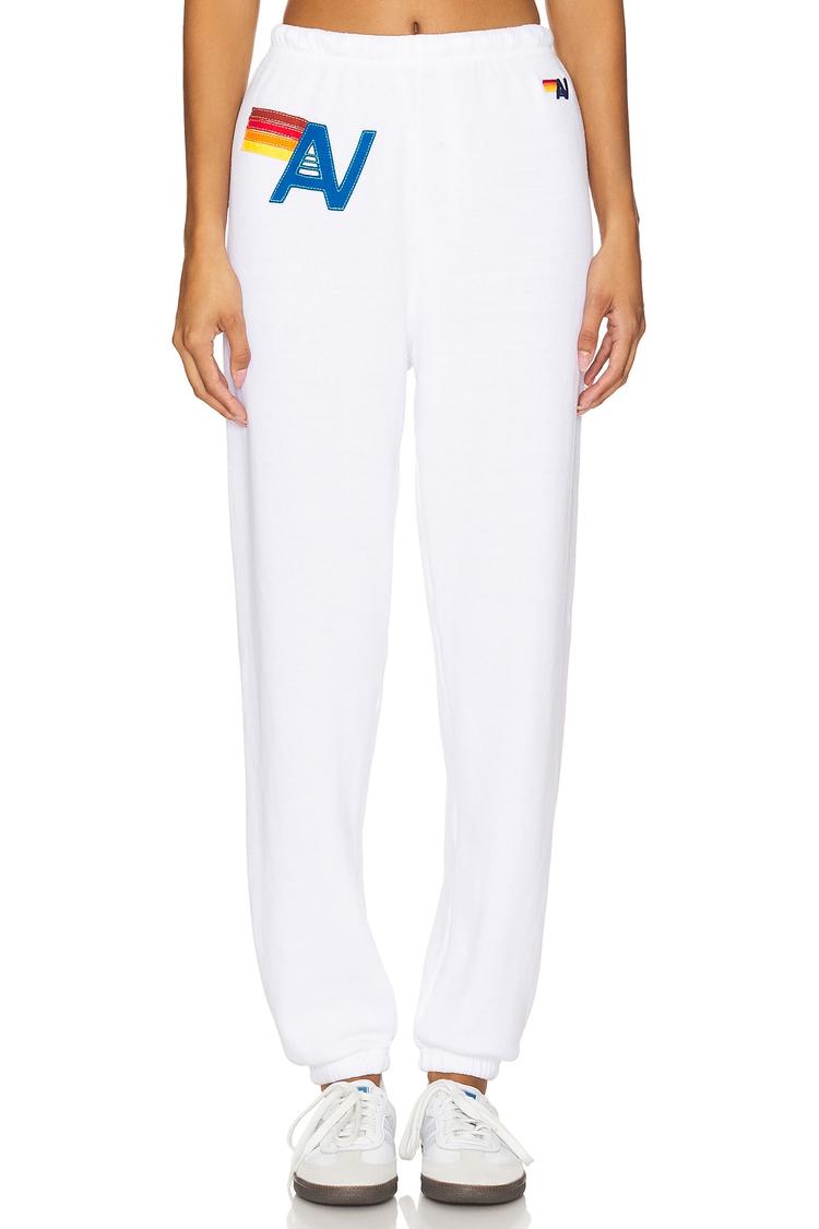 Effortless cool meets everyday coziness in these Aviator Nation Logo Sweatpants. Crafted in a plush midweight knit with a fleece lining, they drape in a relaxed jogger silhouette from a pull-on waist with an elastic band for all-day comfort. The crisp white body pops with a rainbow-arched embroidery and bright blue 'A' logo on the hip, plus clean, cuffed hems for a modern streetwear vibe. Versatile for everything from lounging at home to casual runs around town, pair with a cropped tee or oversized hoodie and your favorite sneakers for a polished, effortless look.