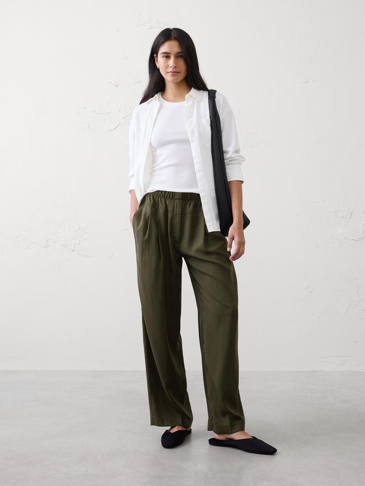MID-RISE STRAIGHT-LEG TENCEL PLEATED PANT