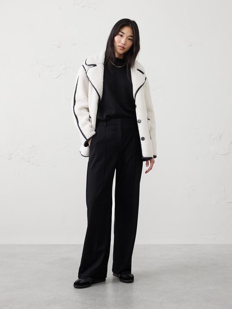WIDE-LEG HIGH-RISE BRUSHED PINTUCK TROUSER