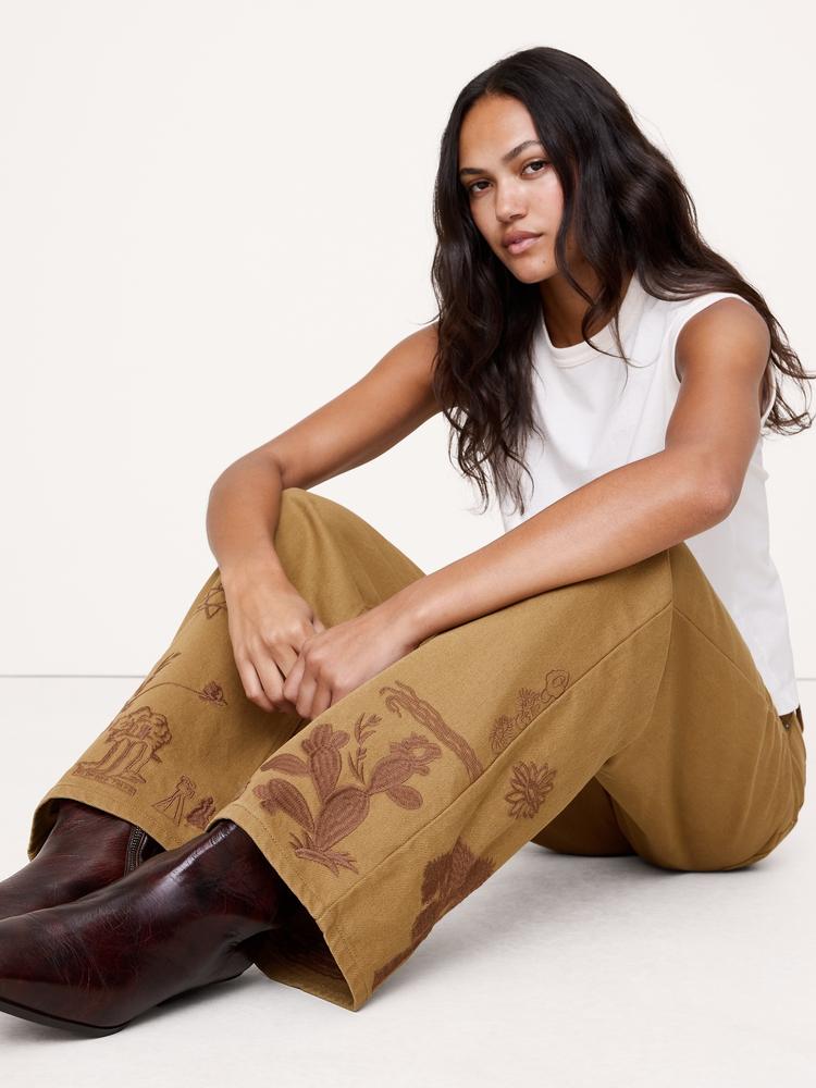 HIGH-RISE EMBROIDERED COTTON CANVAS RELAXED-STRAIGHT PANT