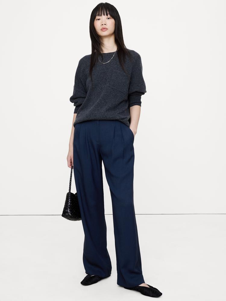SOHO MID-RISE PLEATED WIDE-LEG DRAPEY TWILL PANT