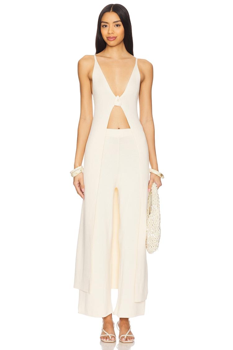 Effortless elegance meets resort-ready comfort in the Clarrisa Set. Crafted in a heavyweight knit in an ivory cream, this pull-on palazzo set drapes fluidly with a relaxed, floor-skimming silhouette. The top features adjustable straps and tonal accents for a subtle, sculpted back, while the matching wide-leg pants move with every step. Soft-touch cotton-nylon blend adds structure without compromising drape, making it ideal for warm evenings, brunch by the pool, or city strolls on vacation. Dress the set together for a cohesive look, or mix and match with simple sandals for a modern, minimalist statement.