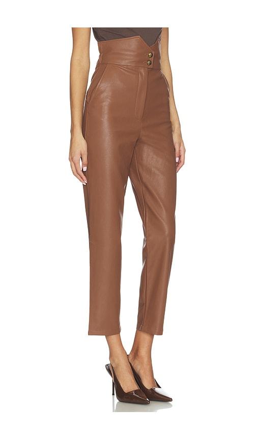 BARDOT ASTER FAUX LEATHER PANT IN BROWN.