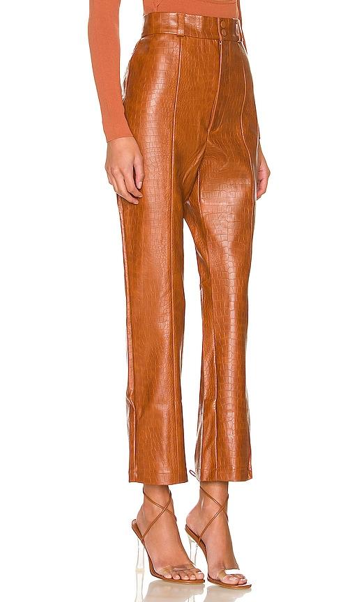 BARDOT CROC FAUX LEATHER PANT IN COGNAC.