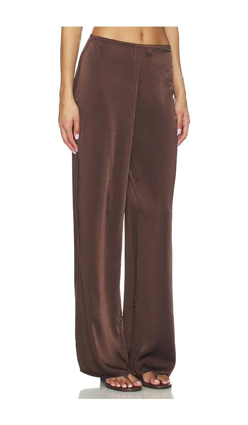 BARDOT DEVIN MID RISE SATIN PANT IN CHOCOLATE.