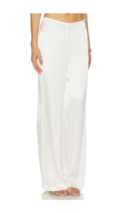 BARDOT DEVIN MID RISE SATIN PANT IN WHITE.