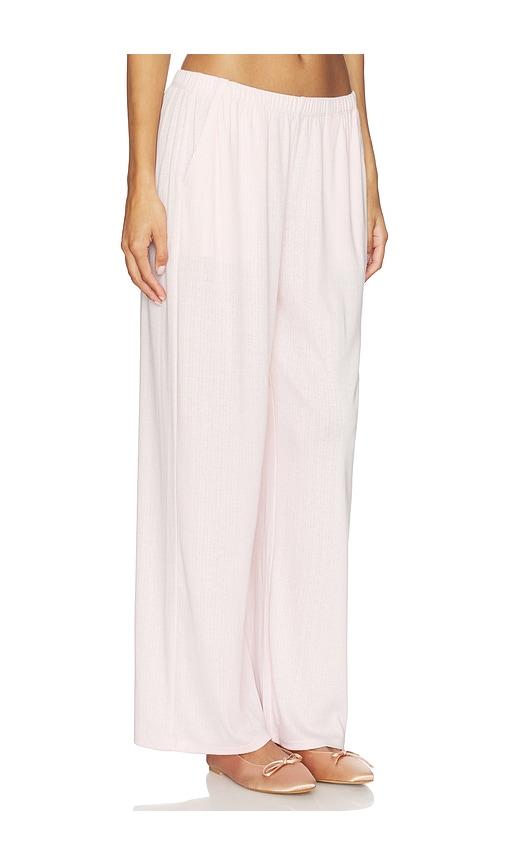 BAREFOOT DREAMS POINTELLE RIB PANT WITH SCALLOP TRIM IN PINK.