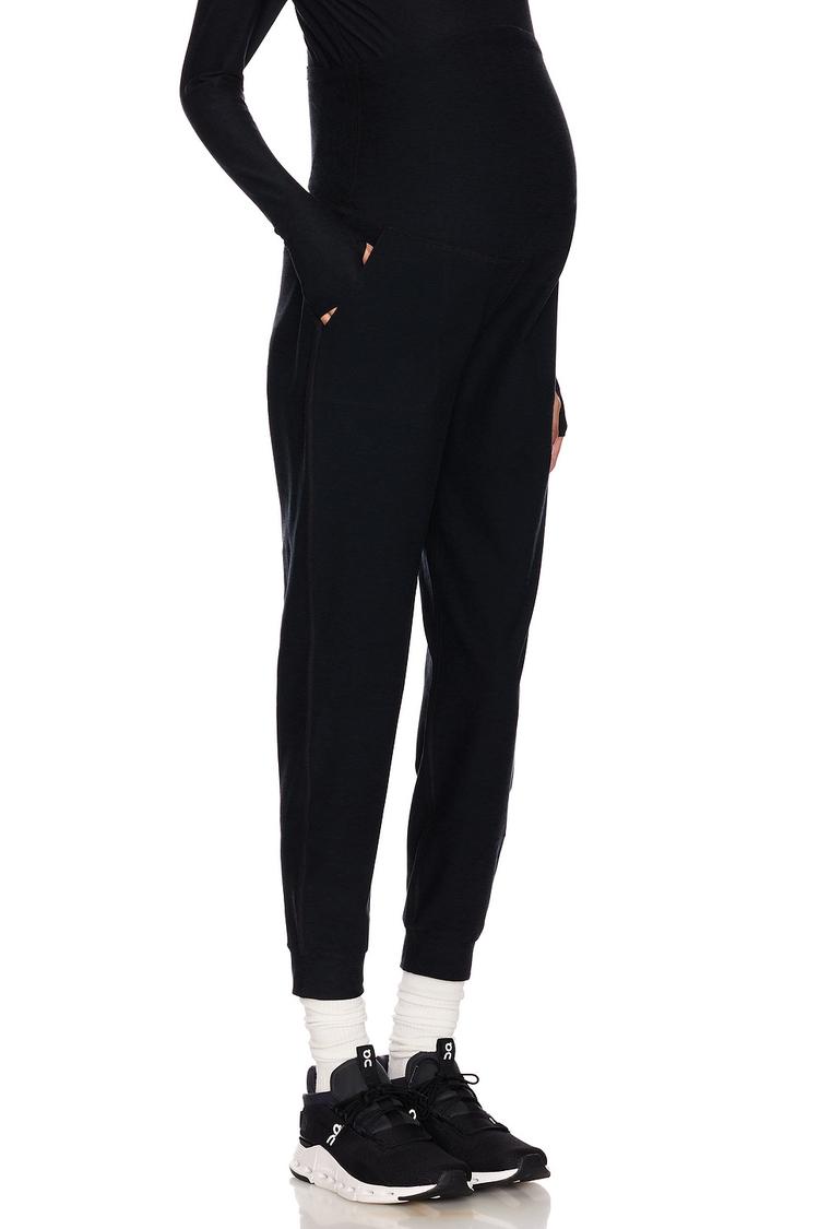Effortless maternity comfort meets casual chic in these black joggers from Beyond Yoga. Cut in a midweight jersey, the jogger drapes with a relaxed, forgiving fit and a high-utility elastic waistband that grows with you. The ankle-length silhouette finishes with a snug cuff, creating a streamlined look you can dress up or down. Slant side pockets keep essentials close at hand, while the breathable polyester-elastane blend delivers just enough stretch for daily movement. Perfect for pregnancy workouts, errands, or lounging, these versatile joggers blend comfort with contemporary style for everyday wear.