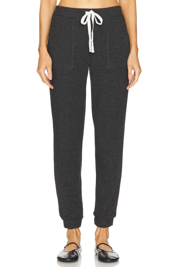 Meet your new go-to for relaxed days and off-duty city strolls: Bobi Sweatpants in a deep charcoal knit of polyester with rayon and a touch of spandex. A streamlined Jogger silhouette with a snug mid-rise waistband that stays put thanks to a white drawstring and an elasticated waist. Soft fleece interior keeps you cozy, while the cuffed ankle and tapered leg create a modern, athletic look. Side pockets add practicality. Pair with a tee and sneakers for casual errands, or layer with a sleek sweater for cozy evenings. Effortless, versatile, and easy to mix and match.