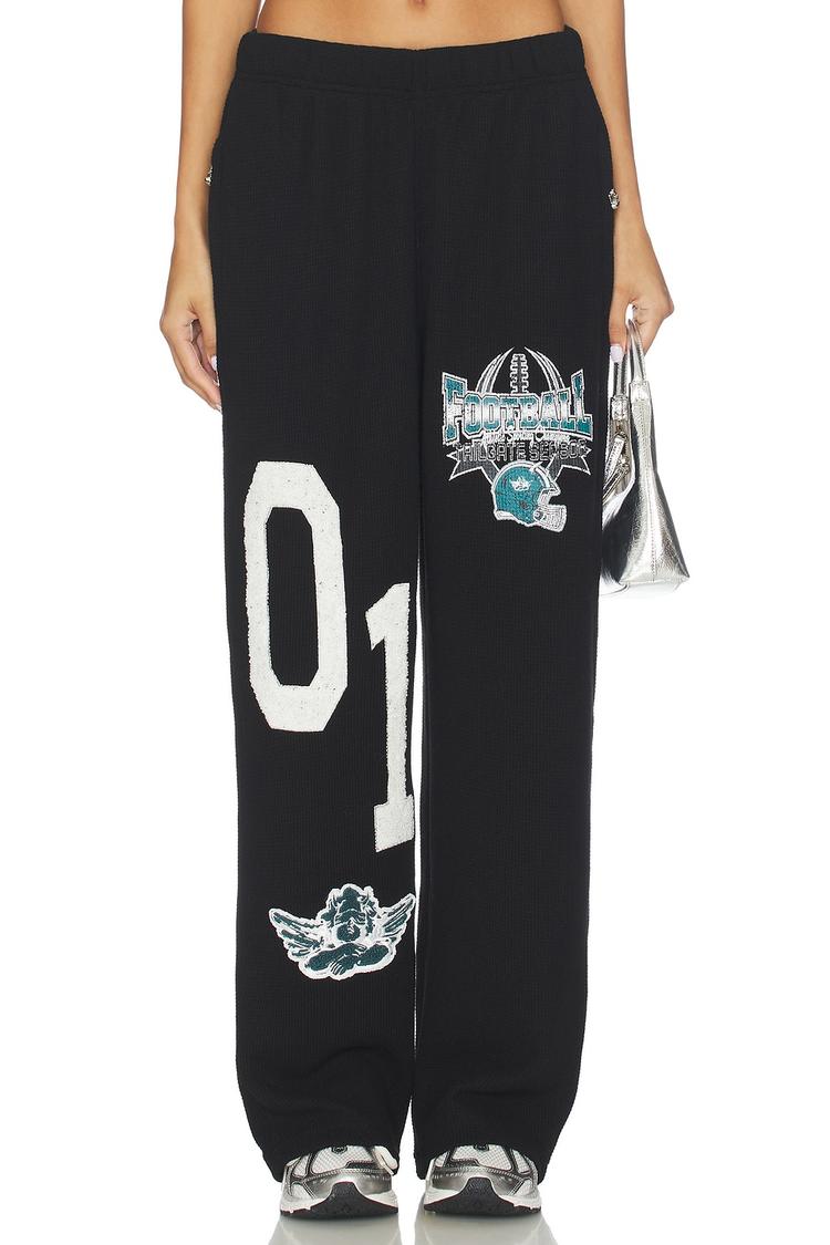 Experience ultimate comfort and urban edge with the Boys Lie 'A Little Birdie Told Me Alex Pants'. Crafted in a soft waffle knit textile with cozy fleece lining, these black wide-leg pants feature a relaxed fit and a regular waist rise with an elasticated waistband and interior drawstring for adjustable ease. Bold white and light blue logo patches and silver-tone zipper details add a stylish streetwear vibe, complemented by dual zipped pockets for practicality. Perfect for casual outings, lounging at home, or street style looks, these pants combine functionality with a trendy aesthetic that stands out effortlessly.