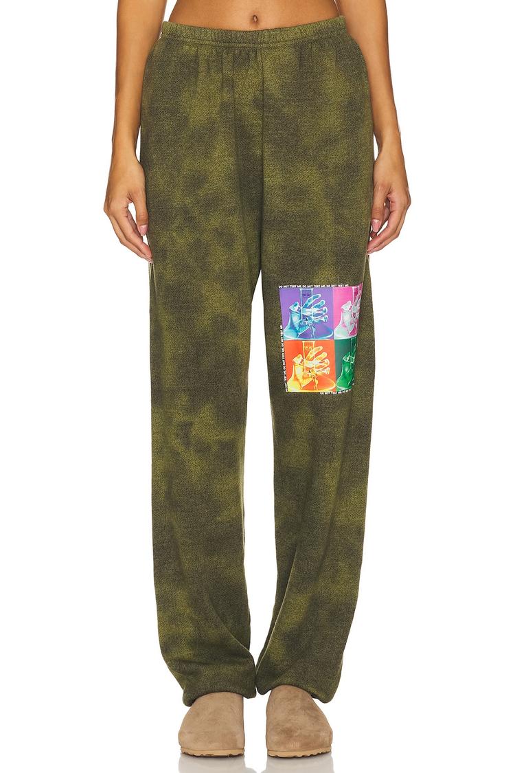 Effortless street-ready comfort meets bold patchwork in these olive camouflage Terry Kimmy Sweatpants from Boys Lie. Crafted from a soft cotton-blend with a fleece lining, they promise warmth and a plush feel. The elastic waistband with an inner drawstring ensures a secure fit, while cuffed hems deliver a tapered, contemporary silhouette. Front and back screen prints, plus an embroidered logo on the back, add graphic edge, while multicolor patchwork patches on the left leg inject a playful pop of color. Pair with an oversized hoodie for weekends out or lounging, for a look that’s equal parts rugged and cool.
