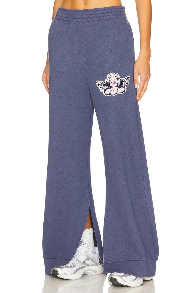 Embrace relaxed comfort with a modern edge in these wide-leg pants featuring a rich matte dark blue hue. Crafted from a soft-touch cotton, rayon, and polyester blend with cozy fleece lining, they promise warmth and breathability. The elasticated waistband ensures easy wear, while the full-length silhouette with slit cuffed hems adds a subtle flair to your casual and streetwear looks. Perfect for laid-back days or stylish loungewear, these pants combine effortless style with all-day comfort, making them a versatile staple for cooler seasons.