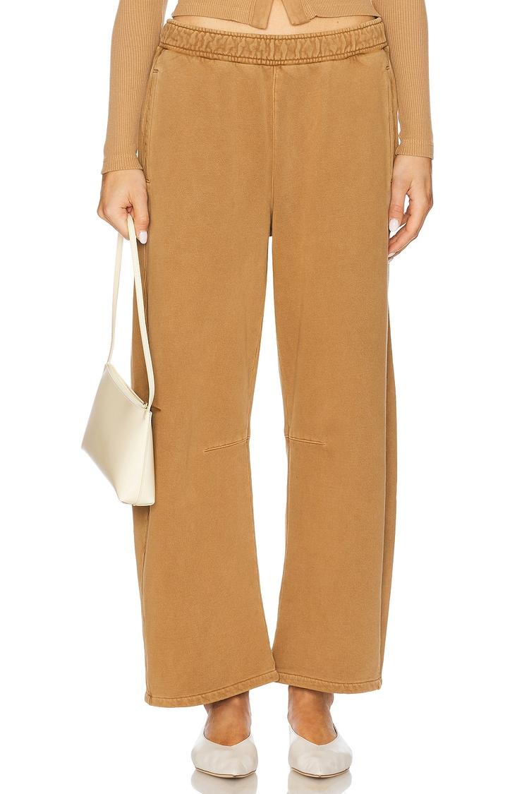 tan wide-leg lounge pants with pockets for errands