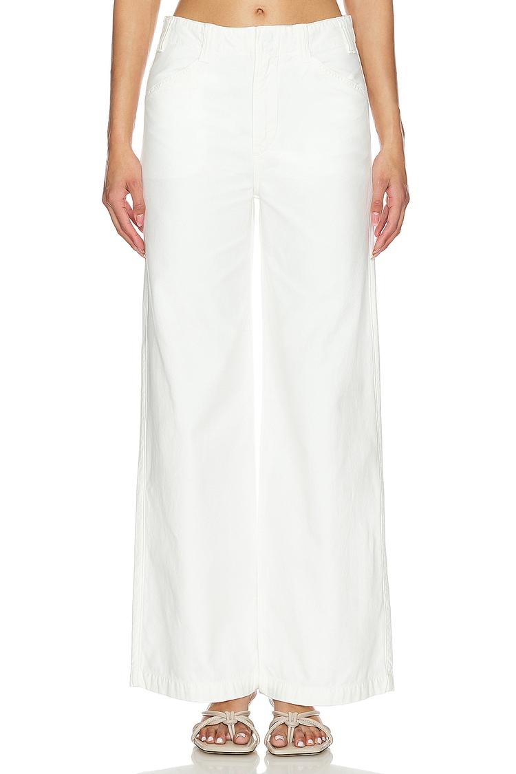 Step into crisp, versatile style with these Palazzo-utility trousers in white cotton twill. The full-length wide-leg silhouette drapes fluidly from a clean flat-front waistband, delivering a modern, sculpted line. Four-pocket styling and a zip fly with a hook-and-bar closure keep the look practical and polished. Crafted from 100% regenerative cotton, these pants are breathable and easy to care for, making them ideal for workdays, travel, or weekend errands. Pair with a tailored blouse for office days or a relaxed tee for casual outings—a timeless, minimalist staple built for everyday confidence.