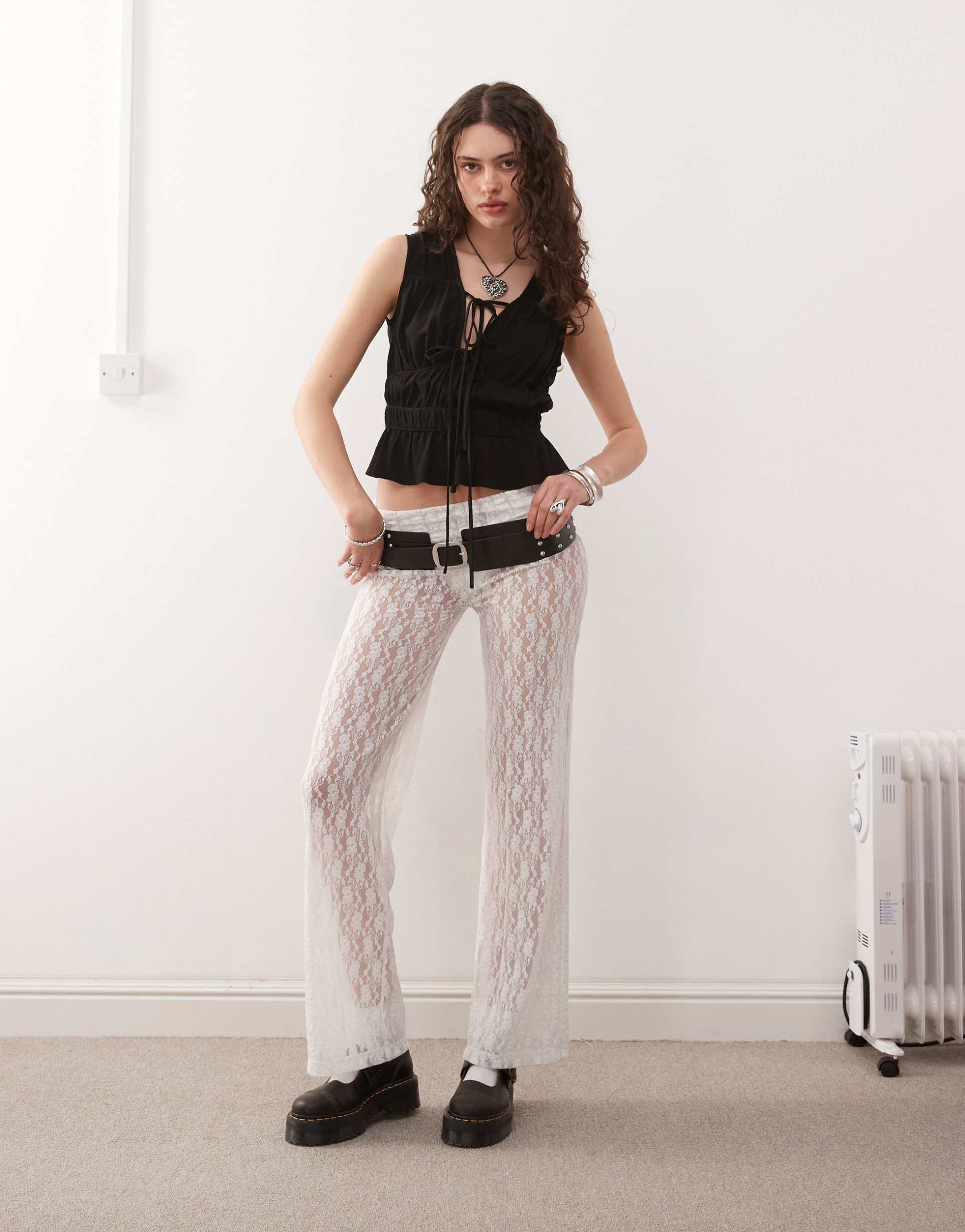 COLLUSION FOLD OVER YOGA PANTS IN WHITE LACE