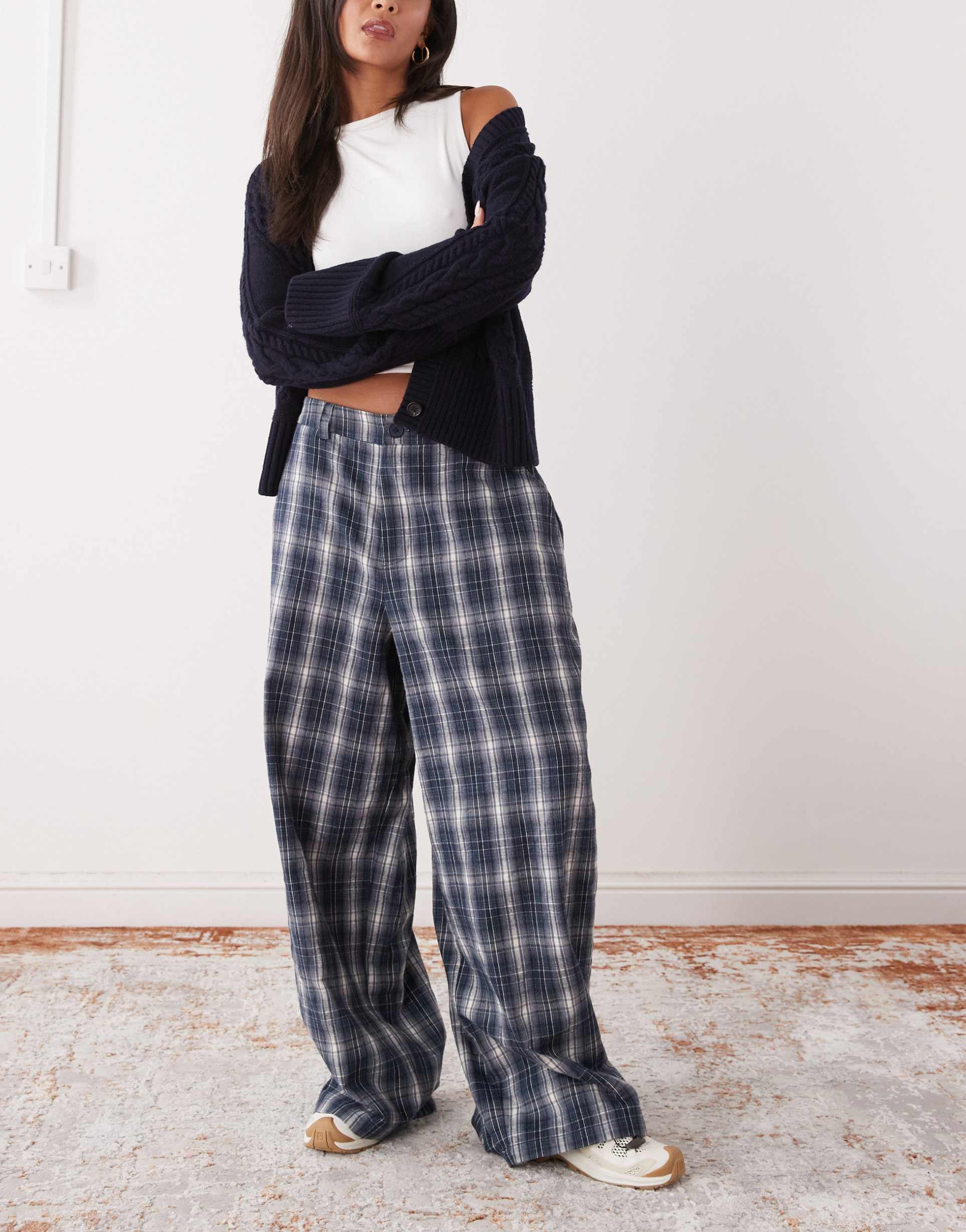 COLLUSION LOW RISE BALLOON PANTS IN BLUE PLAID