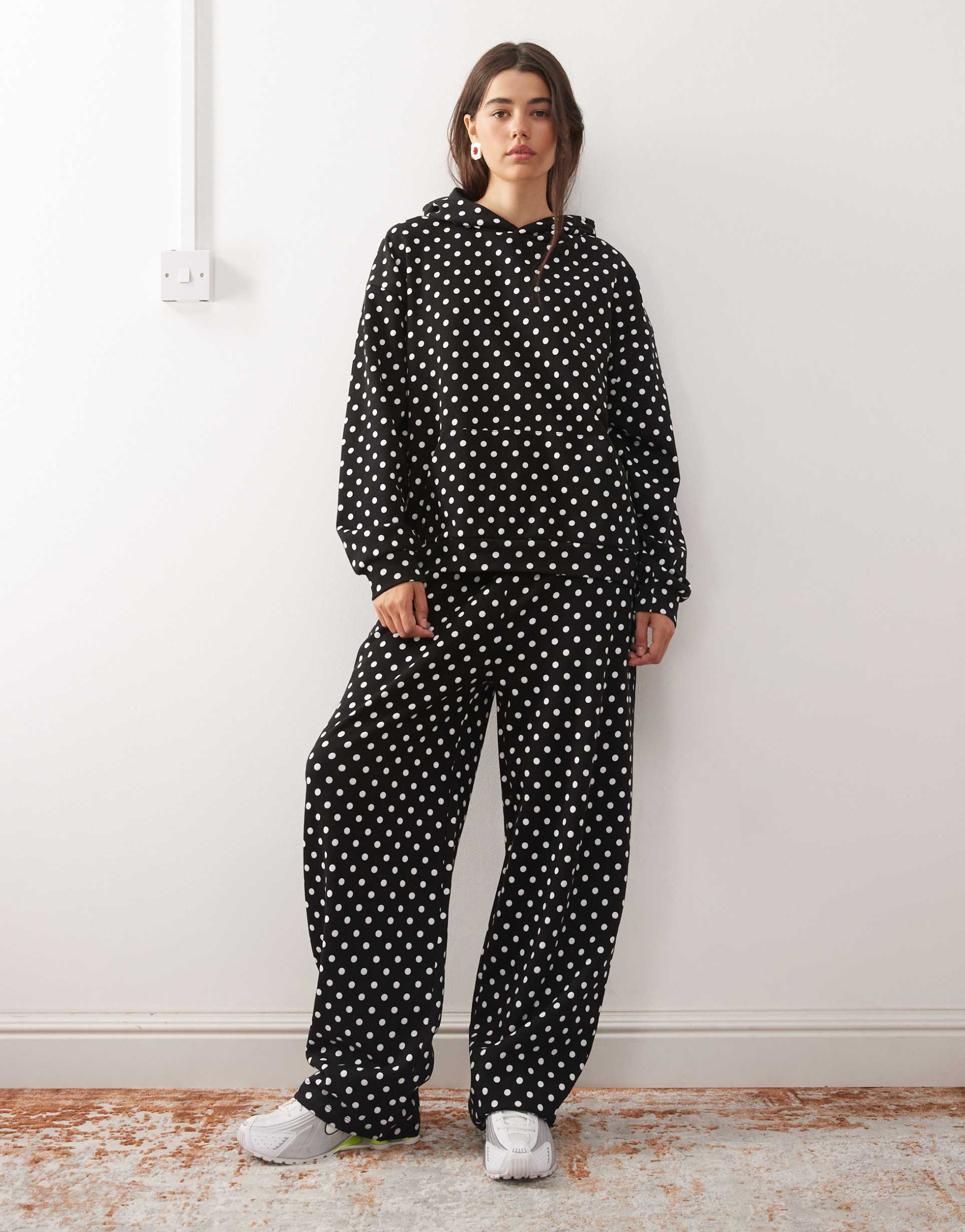 COLLUSION WIDE LEG SWEATPANTS IN BLACK AND WHITE POLKA DOTS
