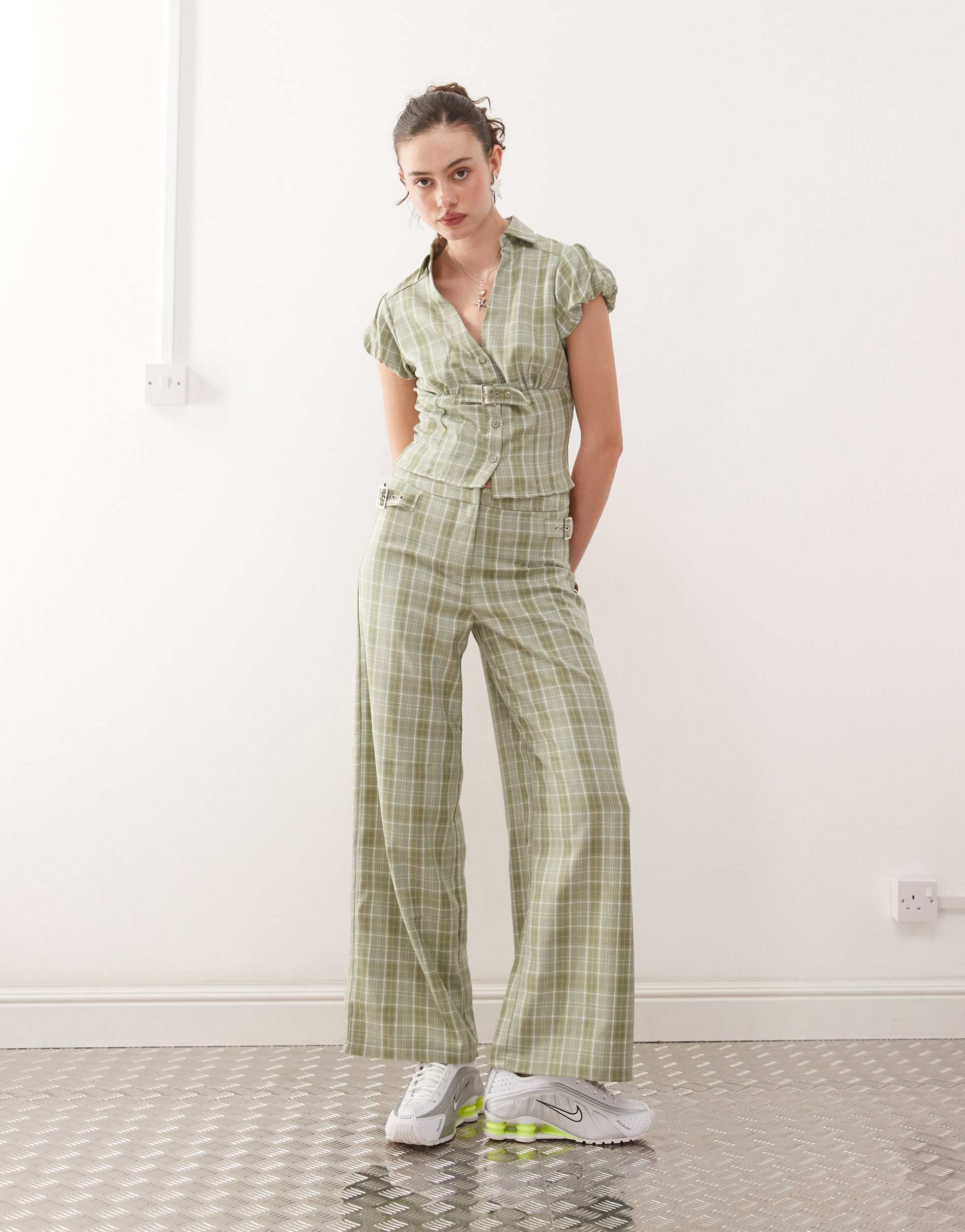COLLUSION Y2K TAILORED PANTS IN GREEN PLAID