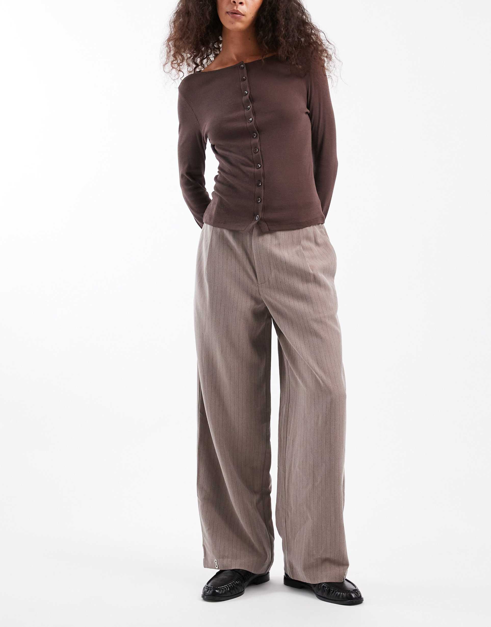 DAISY STREET WIDE LEG TAPERED PANTS IN GRAY PINSTRIPE