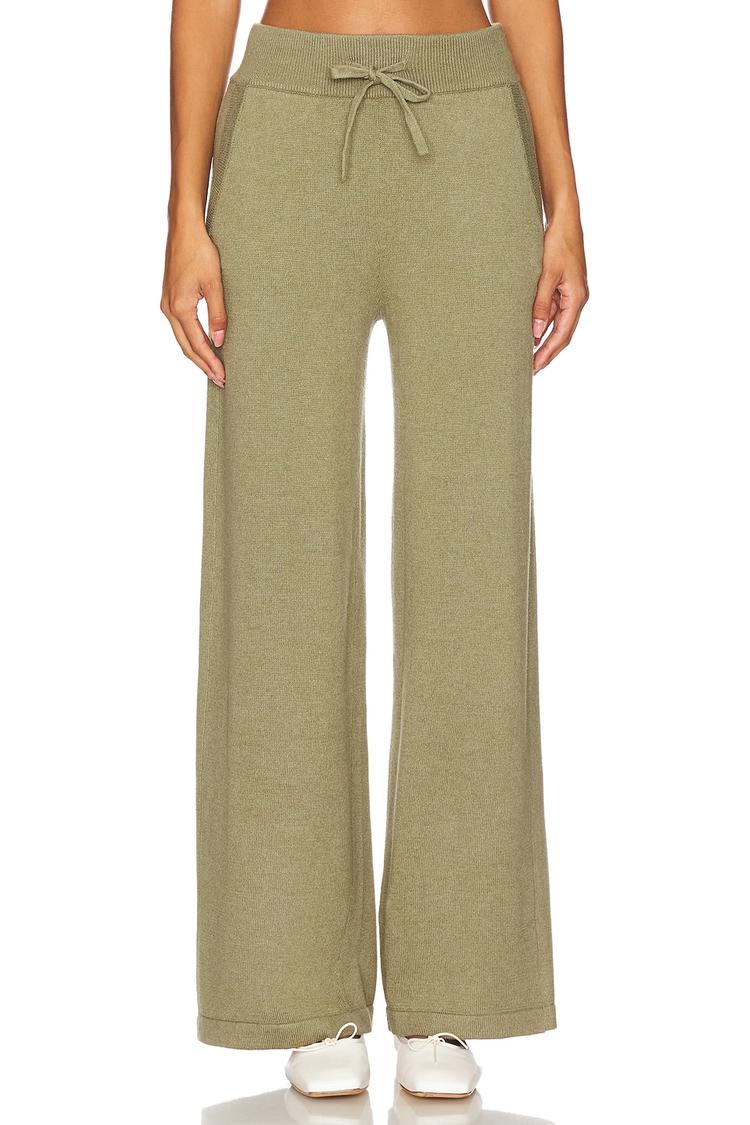 Effortless coziness meets modern polish in these recycled-sweater pants. The olive knit drapes into a sleek, wide-leg silhouette with a high-rise, elastic waist and a practical drawstring. Side pockets add everyday practicality, while the soft, slinky fabric moves with you for all-day comfort. Pair with a matching cardigan or a simple tee for a casual-chic look that wears well from coffee runs to travel days. Built from recycled cotton, acrylic, and polyester, this versatile pant proves sustainable style can feel as good as it looks.
