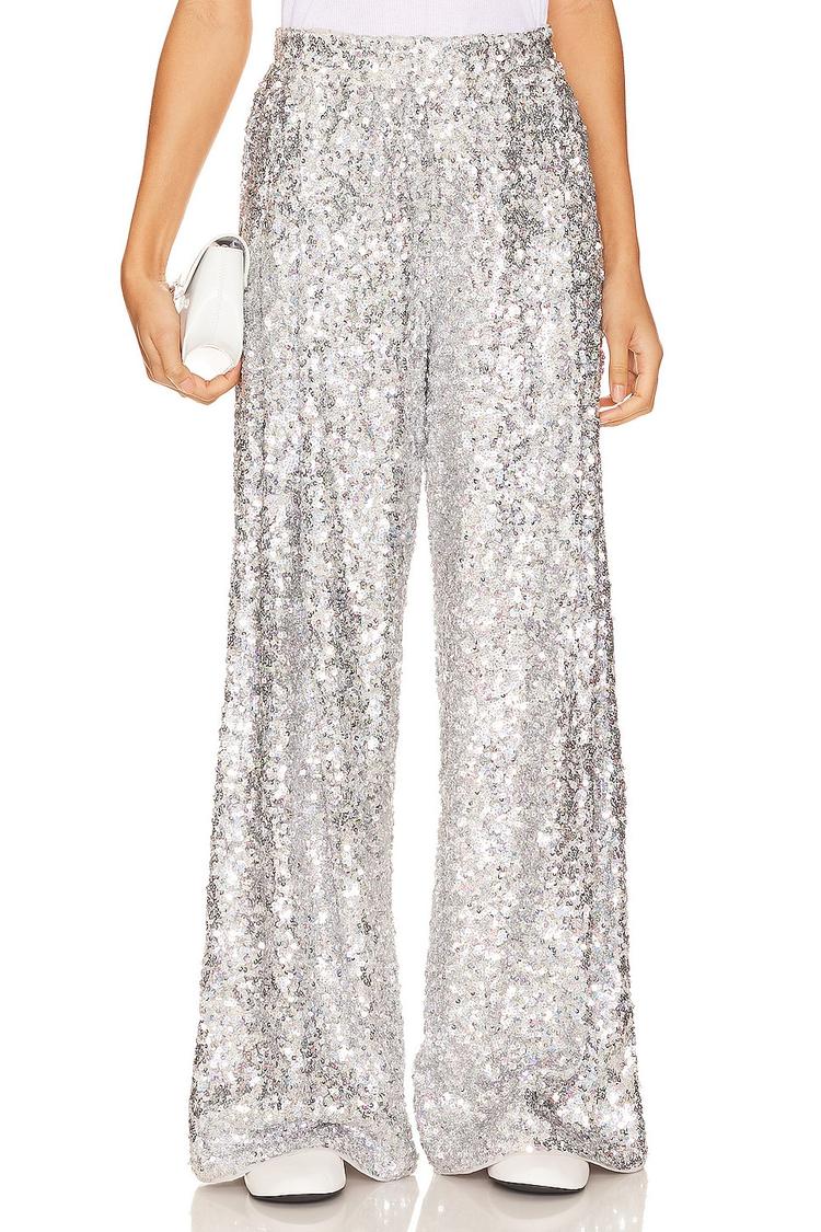 Step into evening glamour with these Fences Sequin Pants from Essentiel Antwerp. A pull-on silhouette with a comfortable elastic waistband gives you drama without fuss, while the full-length wide-leg palazzo cut skims the floor in shimmering silver sequins. The mid-weight sequin fabric is backed by a soft viscose lining for easy wear, and the metallic sparkle catches the light from every angle. Pair with a sleek camisole and minimal heels for cocktail hours, or a blazer and edge-for-brunch. A statement bottom that transitions from party to nighttime city streets with effortless polish.