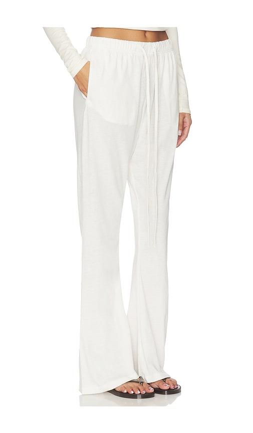 FEAR OF GOD ESSENTIALS FLARE PANT IN IVORY.