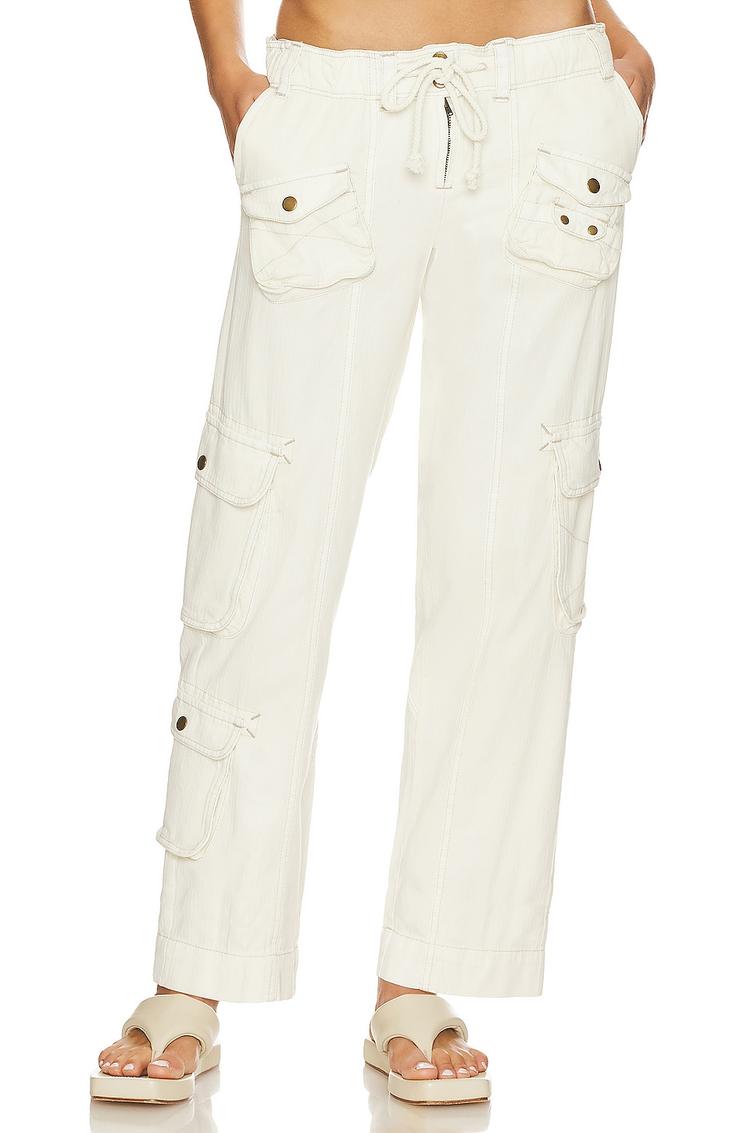Effortless coastal-cool meets utility-ready style. This Tahiti Cargo Pant from Free People sits at a relaxed, comfortable silhouette with an elasticated, drawstring waist for an adjustable fit. Fabricated in breathable cotton, the pants feature signature cargo pockets with flap closures along the legs, creating a utilitarian yet chic look. The ankle-length hem keeps the line streamlined, making them easy to pair with sandals or sneakers for casual days, travel weekends, or laid-back city strolls. A versatile staple that blends ease with a touch of wanderlust-inspired flair.