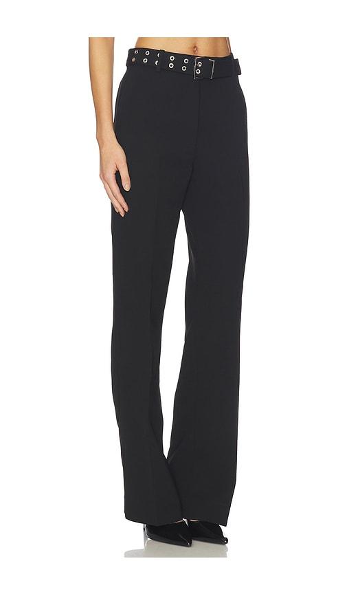 GANNI BONDED CREPE BELTED PANT IN BLACK.