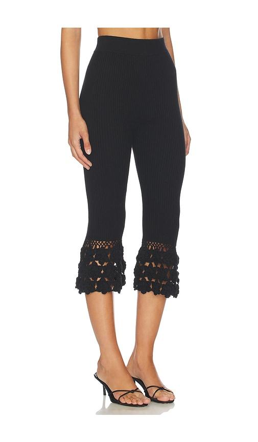 GANNI FINE COTTON RIB CROCHET PANT IN BLACK.