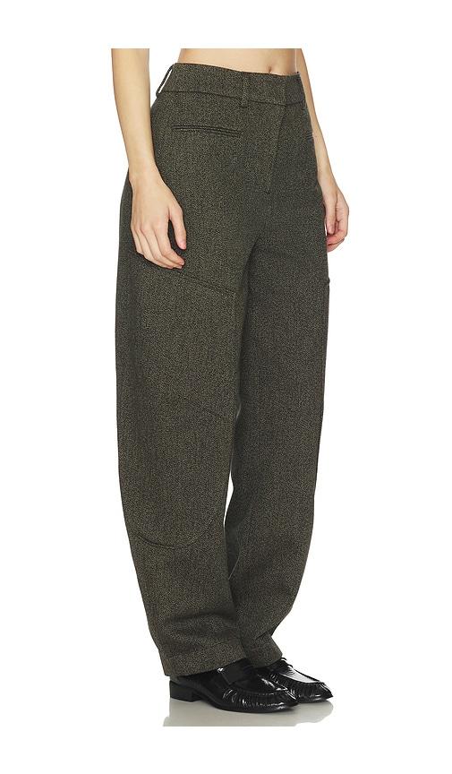 GANNI MOULINE SUITING CURVED PANT IN GREEN.