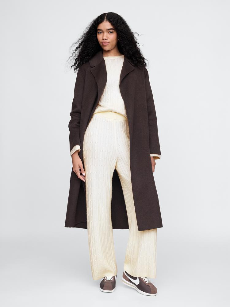 Embrace comfort without sacrificing style in our CashSoft Cable-Knit Sweater Pants. Crafted from a soft blend of cotton and wool, these full-length pants feature a chic cable knit texture that adds sophistication to your casual ensemble. The mid-rise elasticated waistband ensures a perfect fit, making them ideal for lounging at home or stepping out on a brisk day. Pair them effortlessly with your favorite top and elevate your everyday look with ease. Stylish yet snuggly, they embody modern minimalism for the contemporary woman.