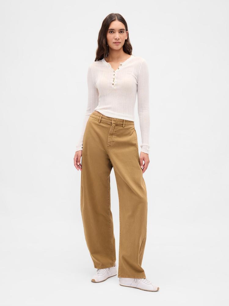 Elevate your everyday style with our Mid Rise Twill Barrel Pants, designed for both comfort and versatility. Crafted from soft cotton, these loose-fit pants feature a classic brown hue that complements any casual outfit. Perfect for a stroll in the park or a day out with friends, they offer ample pocket space and a smooth button and zipper closure for ease of wear. Pair with your favorite top and sneakers for a chic yet relaxed look that transitions effortlessly from day to night. Let these pants redefine your casual wardrobe!