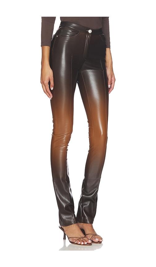 GCDS ZIPPERS FADED FAUX LEATHER SKINNY PANT IN BROWN.