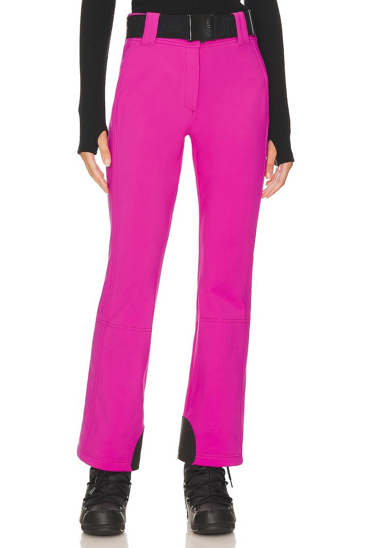 Elevate your wintry adventures with the Goldbergh Pippa Ski Pants in a bold neon pink. Made from a polyester blend with 4-way stretch and a fleece-lined interior, these pants are built to move with you while repelling wind and water for all-day warmth. A removable and adjustable elastic waist belt with embossed logo adds a luxe, travel-ready touch, paired with a zip fly and hook-and-bar closure for a clean silhouette. Ankle zippers and internal snowcatchers seal out cold, making these pants a versatile choice from slopes to city streets.