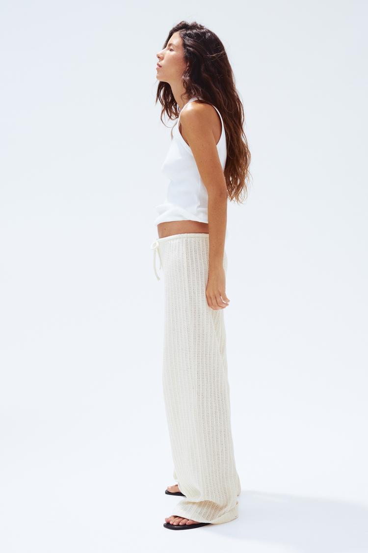 Elevate your everyday with these Textured-Knit Pants in a luminous cream hue. A high-waist, elasticized waistband with a slim drawstring anchors a relaxed, wide-leg silhouette that drapes effortlessly. The cotton-linen blend in a soft knit delivers breathable comfort with a luxe, tactile texture you can see and feel. All-over ribbed knit gives subtle vertical interest, while the full-length cut streams with movement from desk to dinner or sunny weekend strolls. Dress them with a simple tank or a floaty blouse, pair sandals or sneakers, and enjoy versatile, vacation-ready ease all season long.